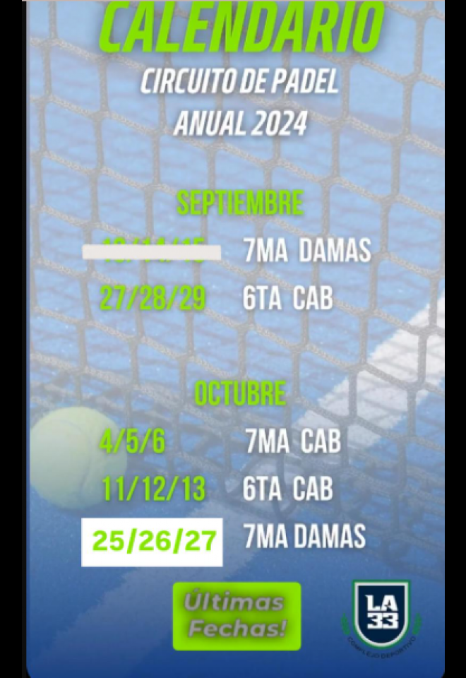 »» Evento: 6ta FECHA - C7 »» Localidad: Toay »» Fechas: 04/10/2024 al 06/10/2024